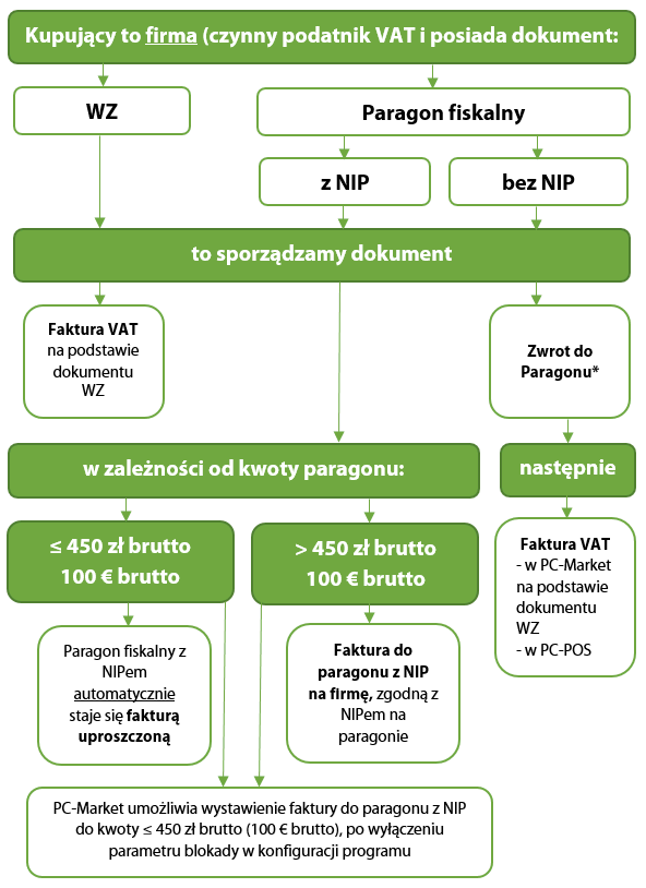 - Faktury do paragonu z NIP (wg ustawy powyżej 450 zł).